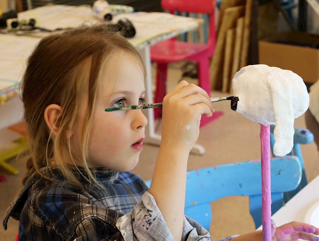 Wir malen, zeichnen, drucken, collagieren und bauen Skulpturen aus den unterschiedlichsten Materialien. Dabei arbeitet jeder in seiner eigenen Geschwindigkeit mit ausreichend Raum zum Ausprobieren und Experimentieren.