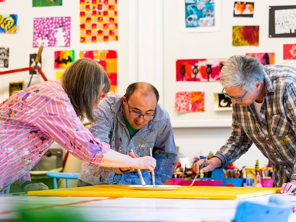 Für diesen Kurs können sich alle Menschen mit und ohne Beeinträchtigung anmelden, die neugierig sind, sich auf das Abenteuer Kunst einzulassen. Gemeinsam vor einer weißen Leinwand zu stehen, sich gemeinsam inspirieren zu lassen, gemeinsam etwas zu entwickeln und so an der Welt des Anderen teilhaben zu können.