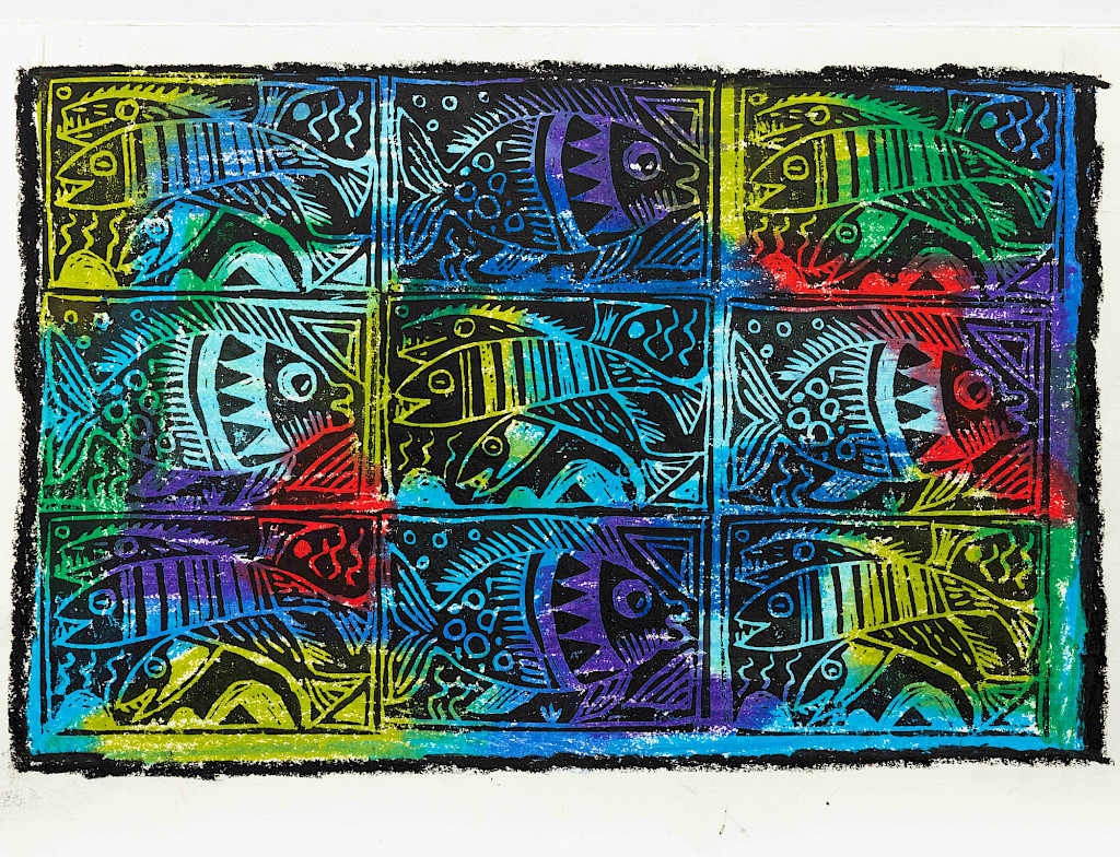 Einen Tag gemeinsam Zeit haben zum Experimentieren. Aus einem speziellen Weichplastik schnitzen wir einen eigenen Druckstock. Unsere Motive werden wir stempeln, walzen und drucken; einfarbig und bunt, Einzelmotive und Serien, groß- und kleinflächig. Alle können am Ende eine kleine Druckedition mit nach Hause nehmen.