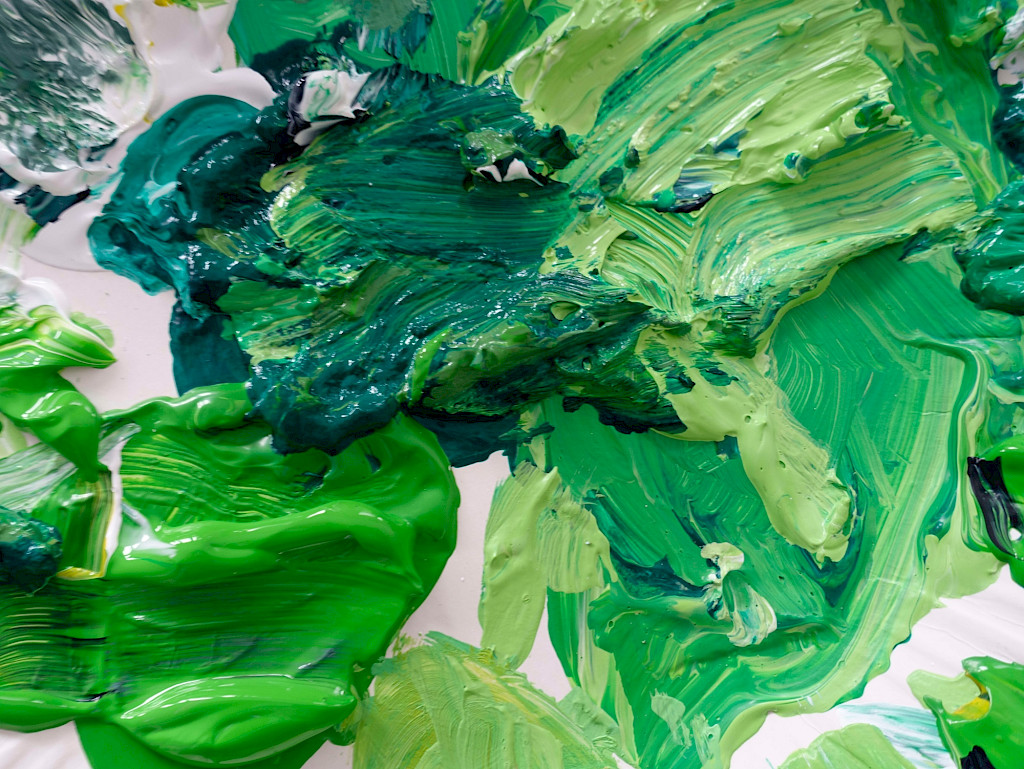 In diesem Kurs experimentieren wir mit unterschiedlichen malerischen Techniken auf großformatigen Papieruntergründen.